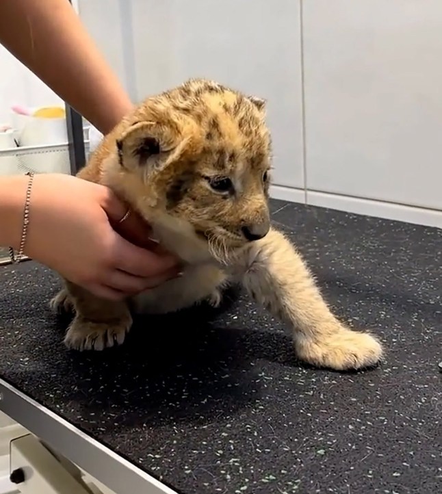 HaiPressPolice are investigating after an eight-week-old lion was filmed having its claws trimmed at a grooming salon.