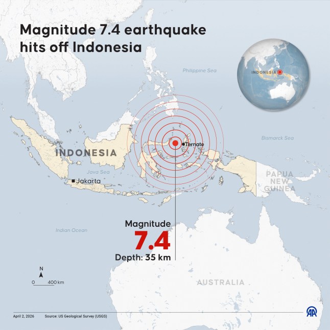 The 7.4-magnitude quake in the Molucca Sea between the Sulawesi and Maluku island groups sent people fleein