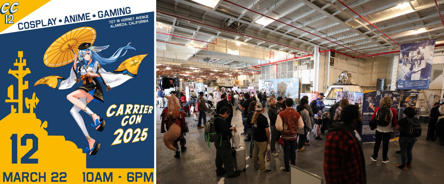 In March 2025, the USS Hornet Museum, a National Historic Landmark in Alameda, California, hosted its annual CarrierCon ACGN (Anime, Comic, Game, Novel) convention. The official mascot Hornet Chan, designed by young artist Haowei Tang, welcomes tourists from all over the States. This anthropomorphic character ingeniously incorporates the warship elements into modern anime aesthetics, bridging history with contemporary culture. Its success in attracting younger generations vividly demonstrates the deep integration of ACGN culture with historical preservation.