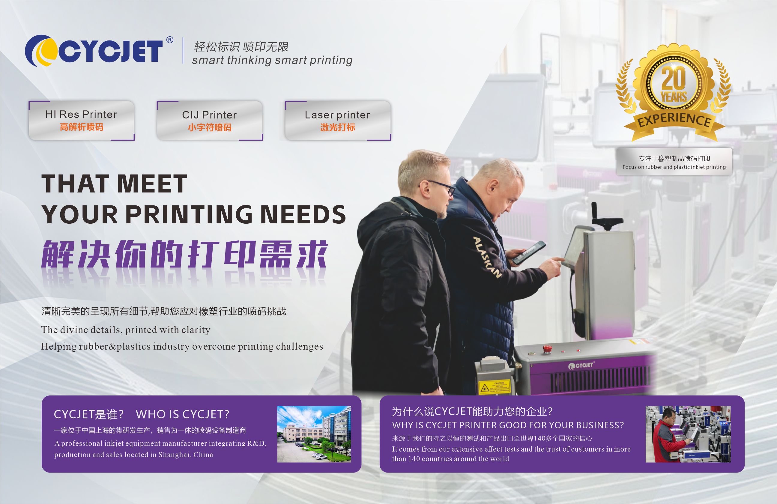 CYCJET is the brand name of Yuchang Industrial Company Limited. As a manufacturer, CYCJET have more than 20 years of experience for R& D different types of handheld inkjet printing solution, Laser printing solution, and portable marking solution, High Resolution Printing solution in Shanghai China.
