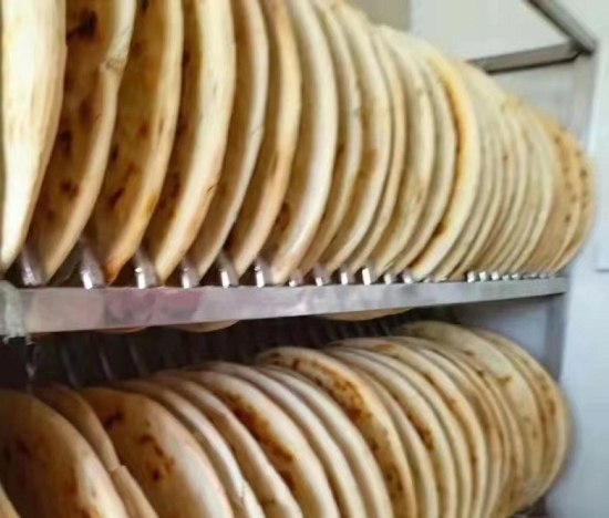 Wang Hui Guobing from Shilianzi Town is crispy and delicious. The finished product weighs 7 pounds each and takes 4 hours to bake before being cooked. The front side has a golden color, with a crispy skin and soft flesh, suitable for all ages.(Correspondent Kou Wenyun)