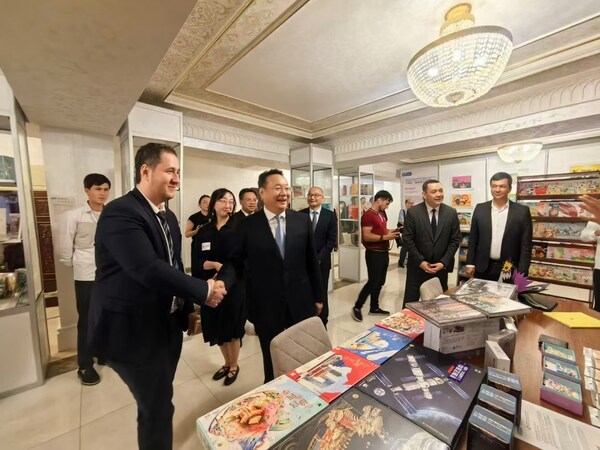 The audience also witnessed the establishment of the "Future Vision" Digital Cultural Alliance,an initiative aimed at bringing together publishers,youth art groups,and creative brands from China,and beyond. The alliance seeks to explore new models for cross-cultural collaboration through digital and intelligent platforms. Khaitov Orif Bolikulovich,Head of the Samarkand Department of Culture,and Huang Jing,Director of the Cultural Exchange Center at the China Intercontinental Communication Center,jointly unveiled the alliance plaque.