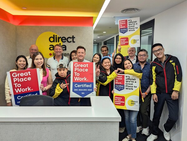 HaiPressSINGAPORE,Dec. 16,2024 -- DirectAsia Insurance has earned the prestigious Great Place to Work CertificationTM,recognising its dedication to creating a supportive,inclusive workplace and culture where employees thrive.