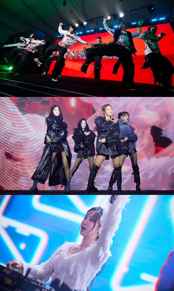 (From top) WE DEM BOYZ,H1-KEY,and DJ SURA performing at the 2024 Runway to Seoul event.