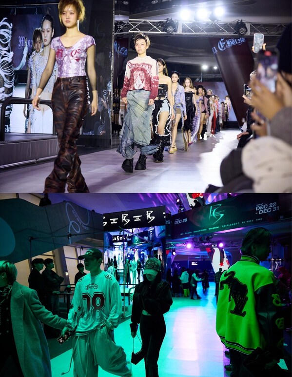 DUCKDIVE opened the runway with its street-smart designs in collaboration with the I'AM dance crew. TRIPLEROOT,known for contemporary women's fashion,partnered with K-Tigers dance crew for a vibrant performance. RAIVE closed the show with its debut fashion showcase,blending free-spirited vintage aesthetics with hip-hop dance crew HolyBang for a boundary-breaking finale.