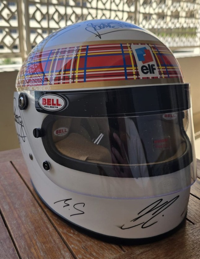 Schumacher’s initials on the helmet,along with other signatures by fellow champions
